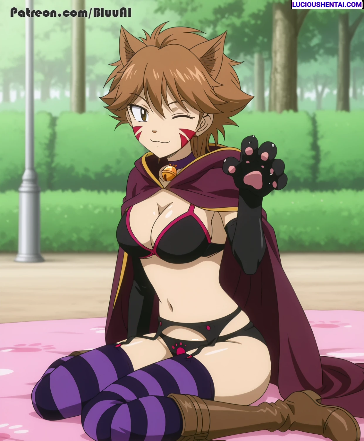 Millianna a mischievous and playful fairy from Fairy Tail finds herself in a magical forest Her vibrant wings flutter as she explores the lush greenery The air is filled with enchantment and she feels an irresistible pull She discovers a hidden glade where ecstasy awaits Her heart races as she succumbs to the allure of mystical pleasure