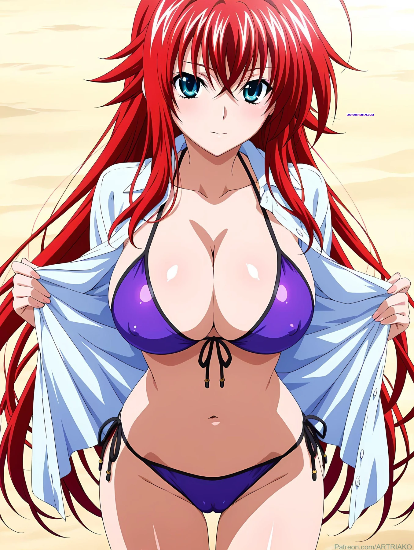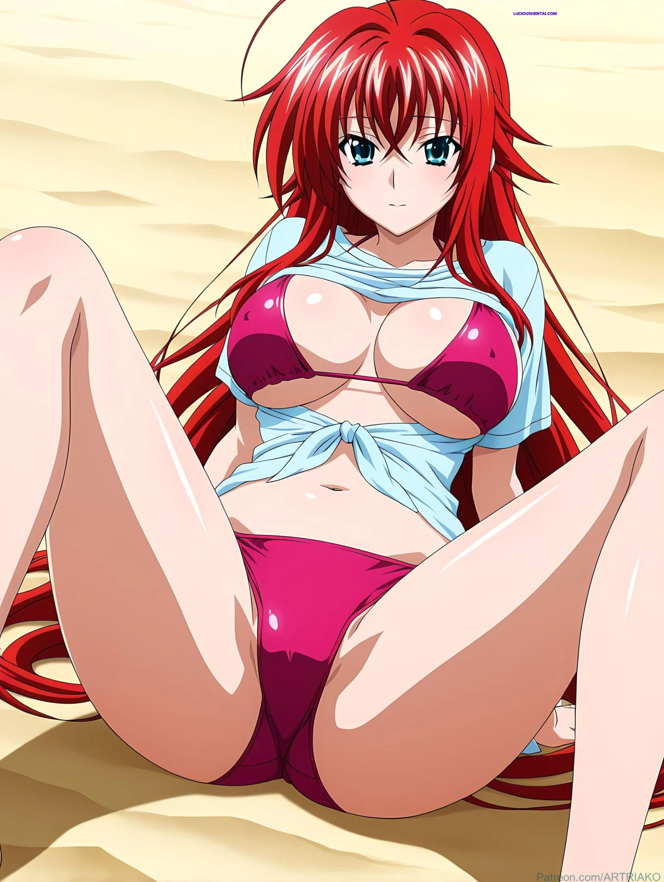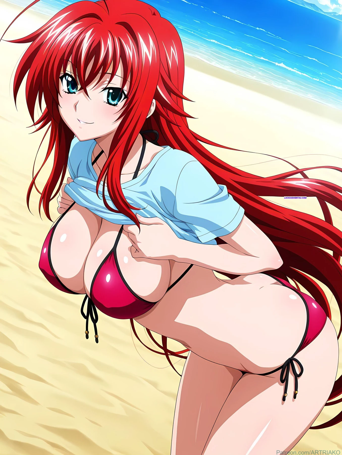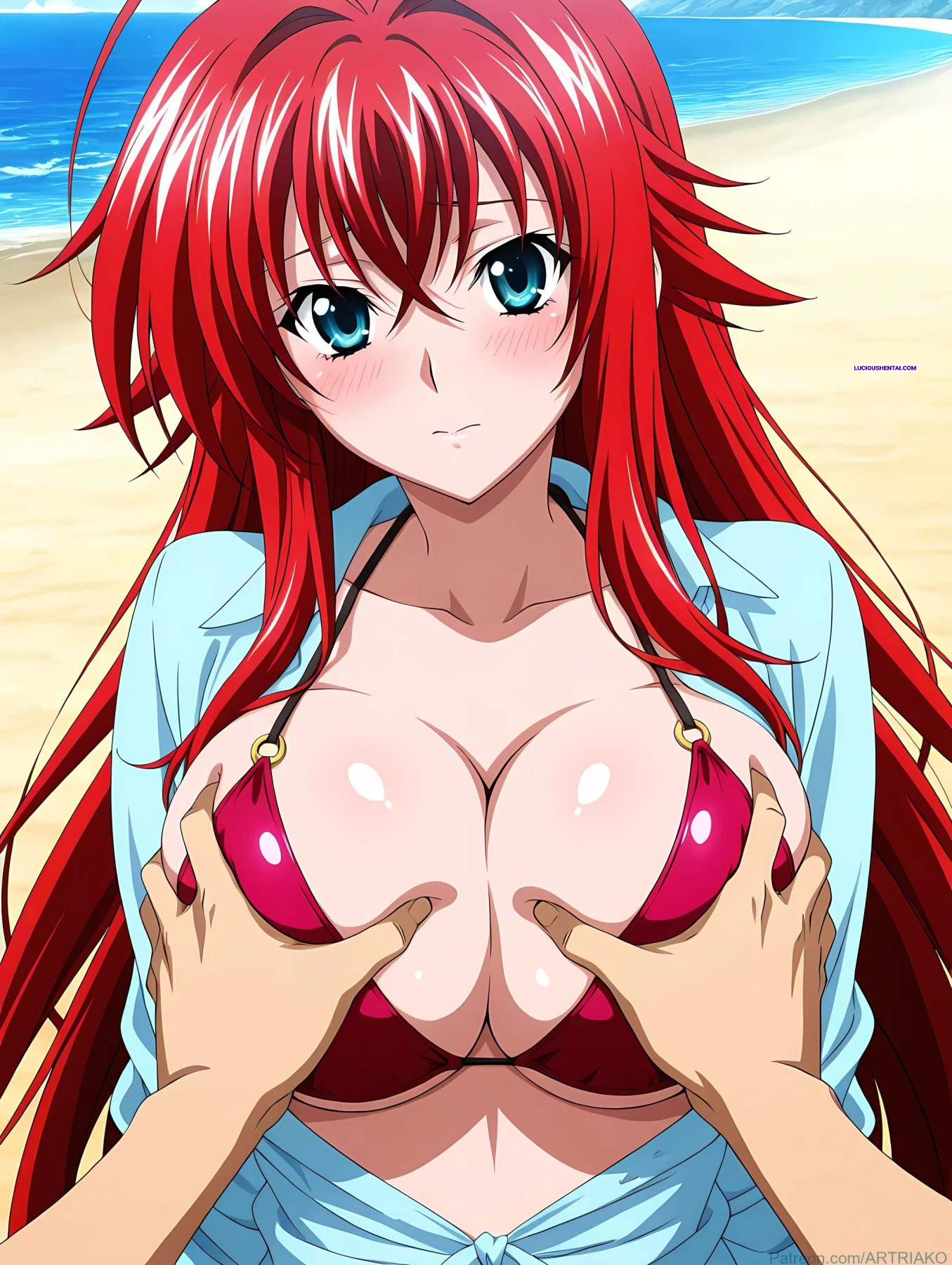 In the demonic halls of Kuoh Academy, fiery-haired Rias Gremory surrenders to raw passion during a forbidden encounter. As her peerage watches in awe, the crimson princess is ravished relentlessly, her voluptuous body quivering under intense thrusts, blending supernatural power with unbridled ecstasy in this steamy High School DxD tribute by artriako.