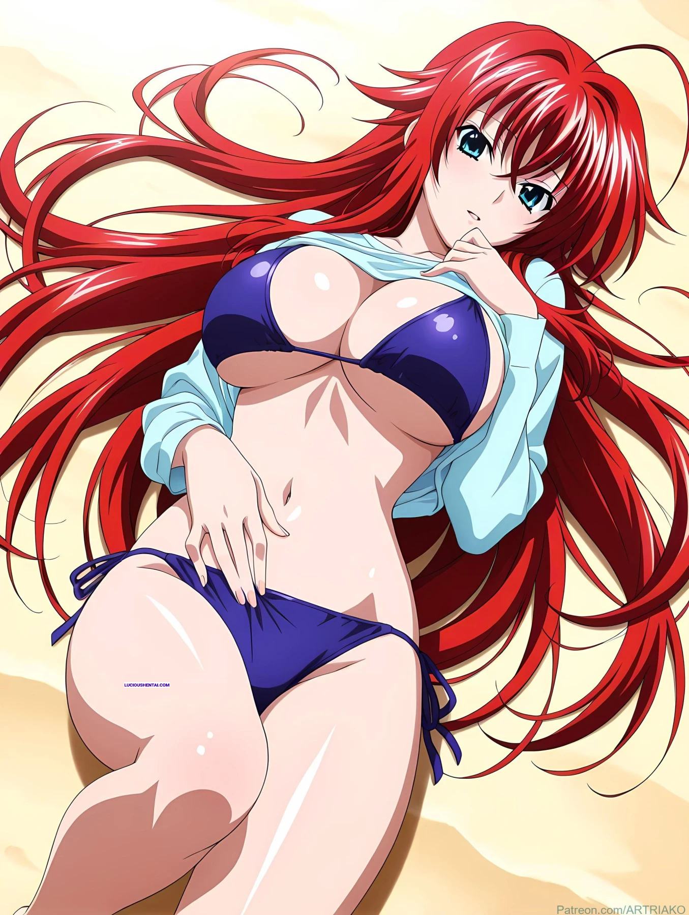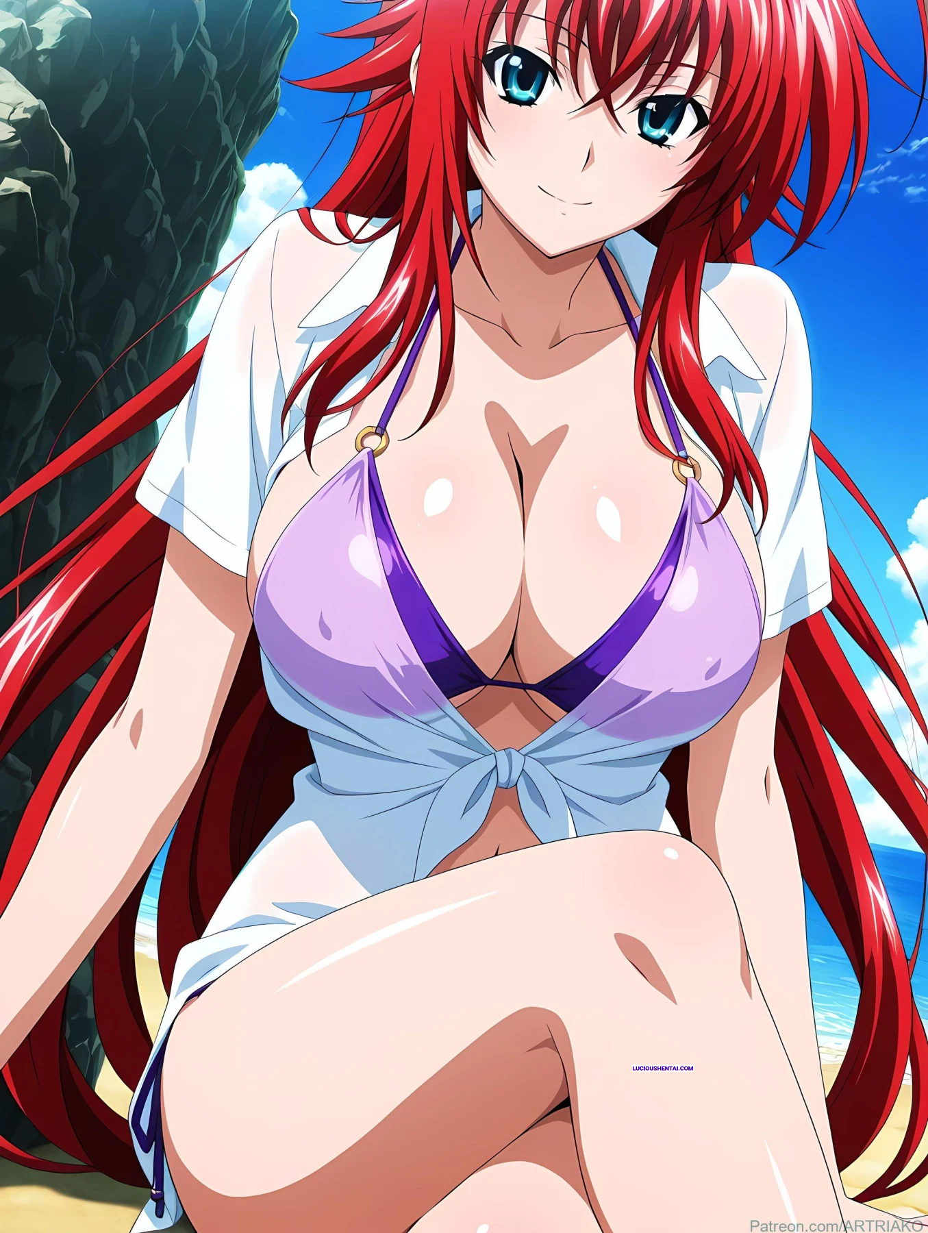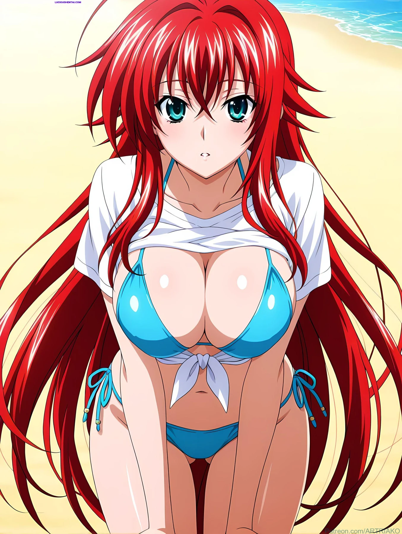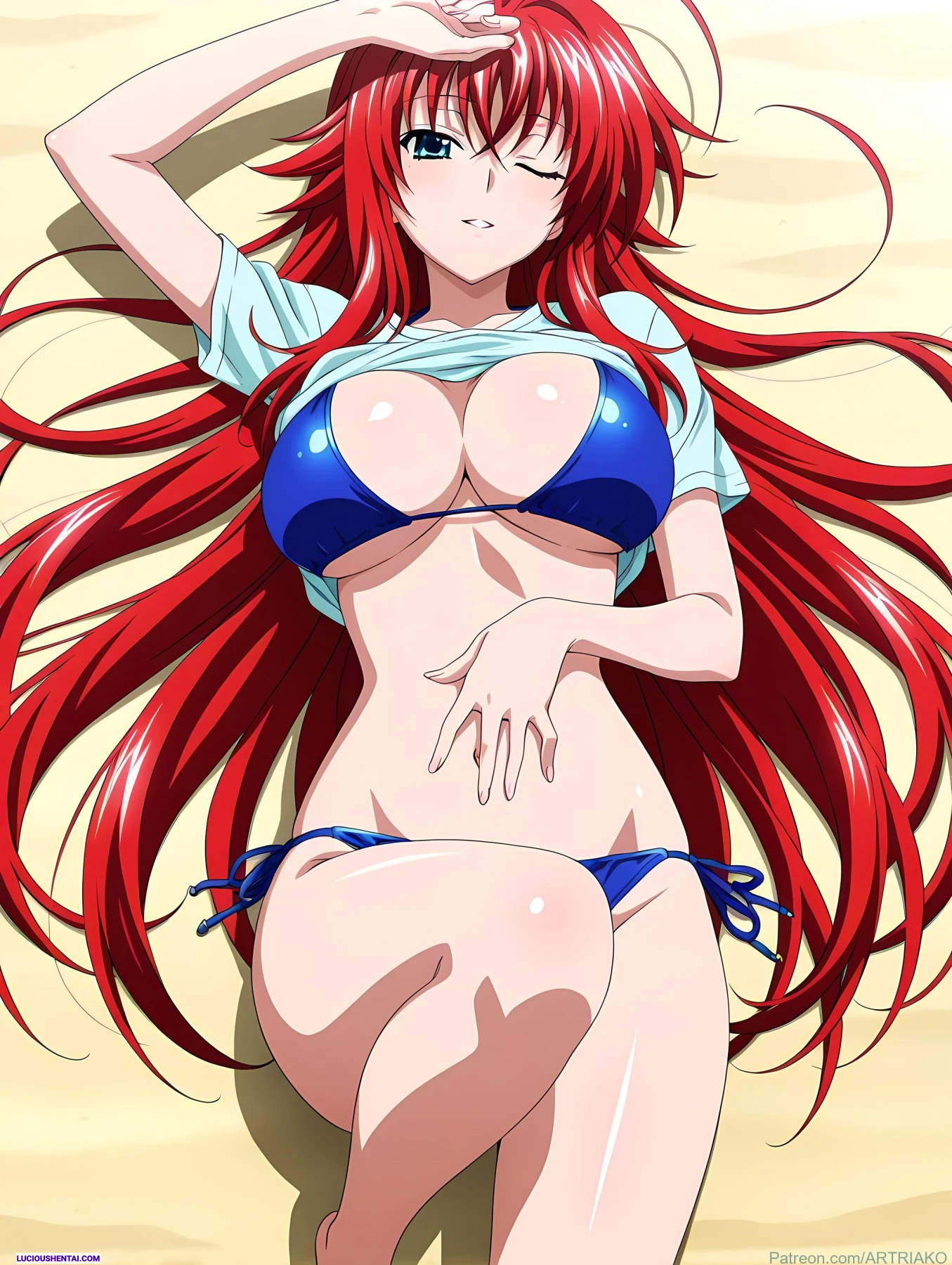 In the demonic halls of Kuoh Academy, fiery-haired Rias Gremory surrenders to raw passion during a forbidden encounter. As her peerage watches in awe, the crimson princess is ravished relentlessly, her voluptuous body quivering under intense thrusts, blending supernatural power with unbridled ecstasy in this steamy High School DxD tribute by artriako.