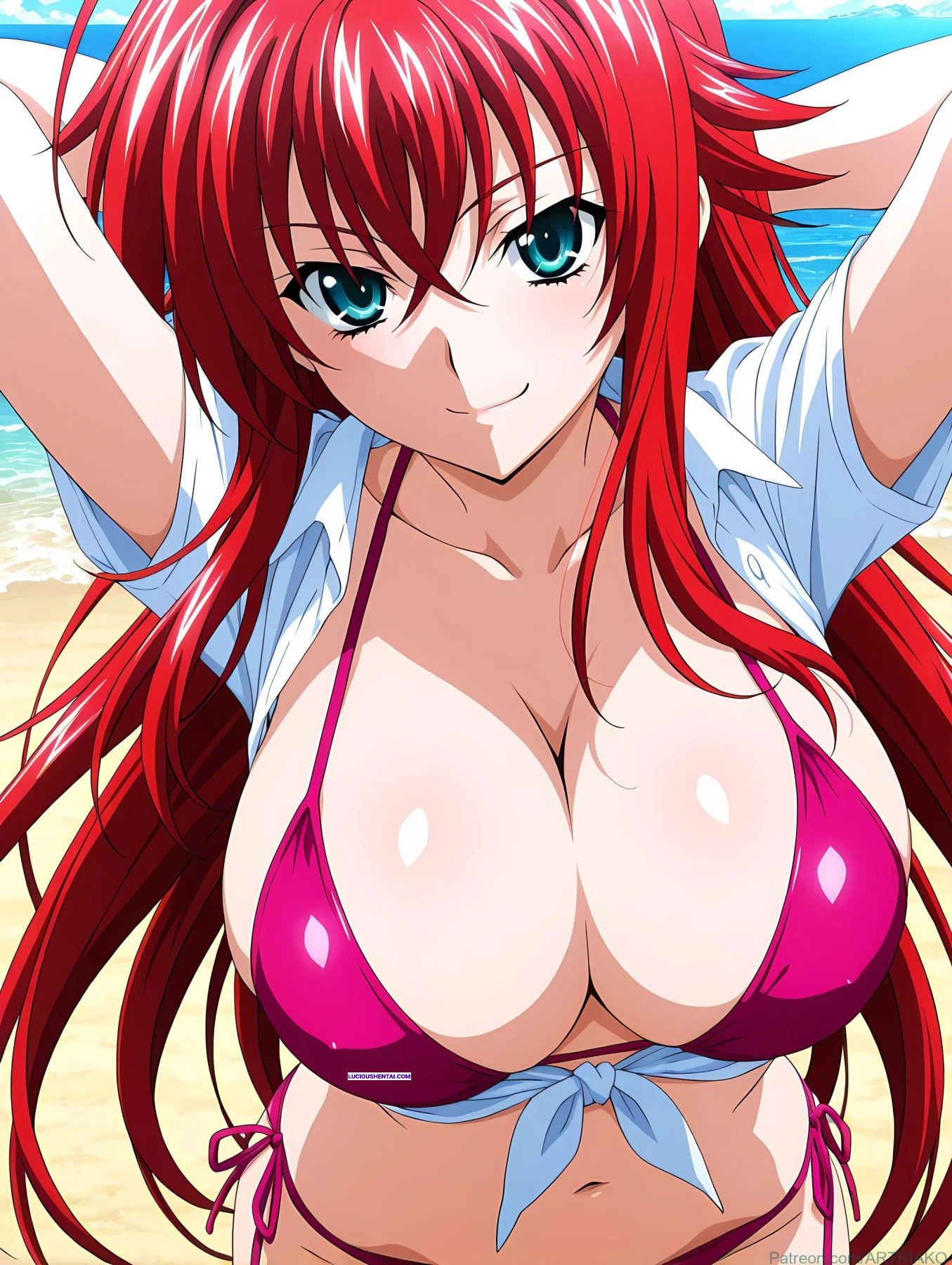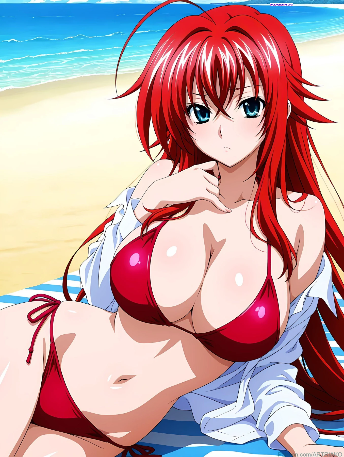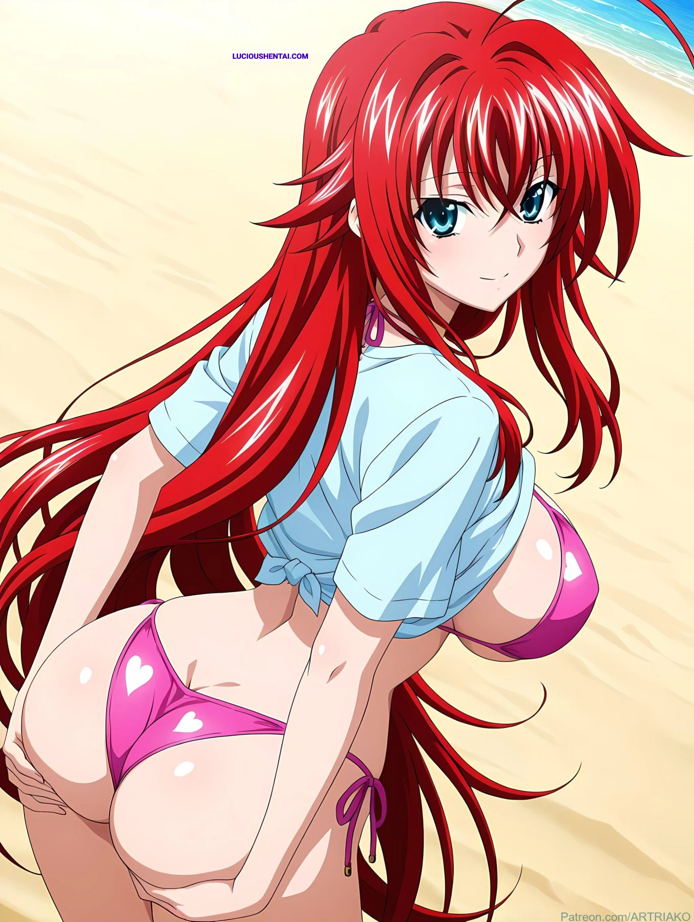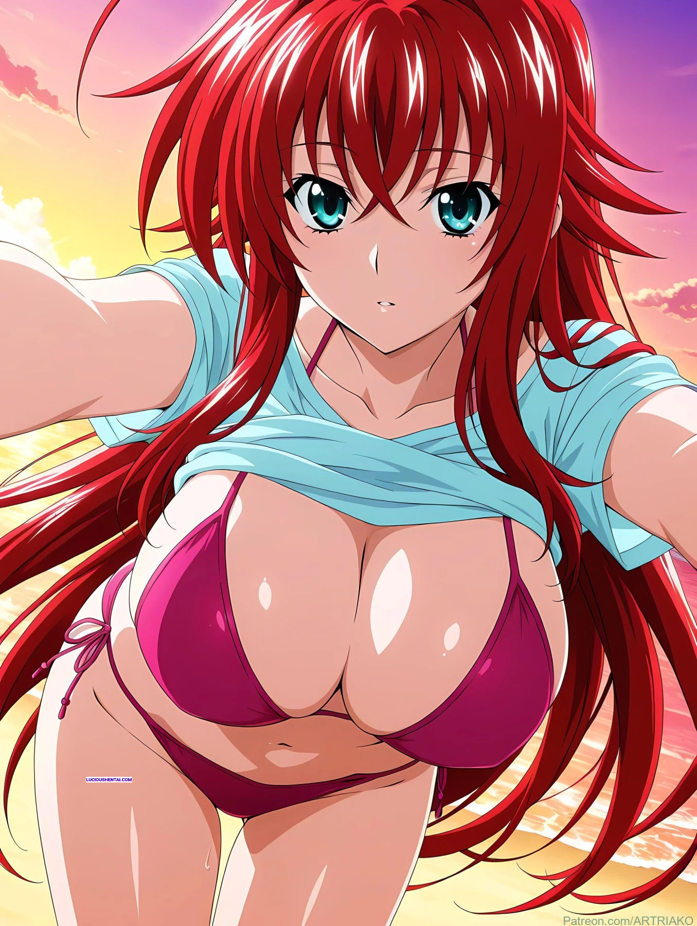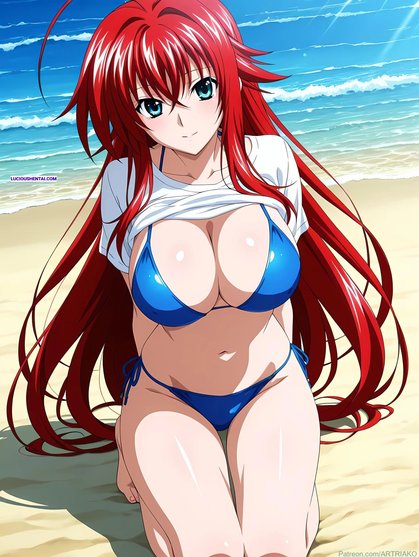In the demonic halls of Kuoh Academy, fiery-haired Rias Gremory surrenders to raw passion during a forbidden encounter. As her peerage watches in awe, the crimson princess is ravished relentlessly, her voluptuous body quivering under intense thrusts, blending supernatural power with unbridled ecstasy in this steamy High School DxD tribute by artriako.