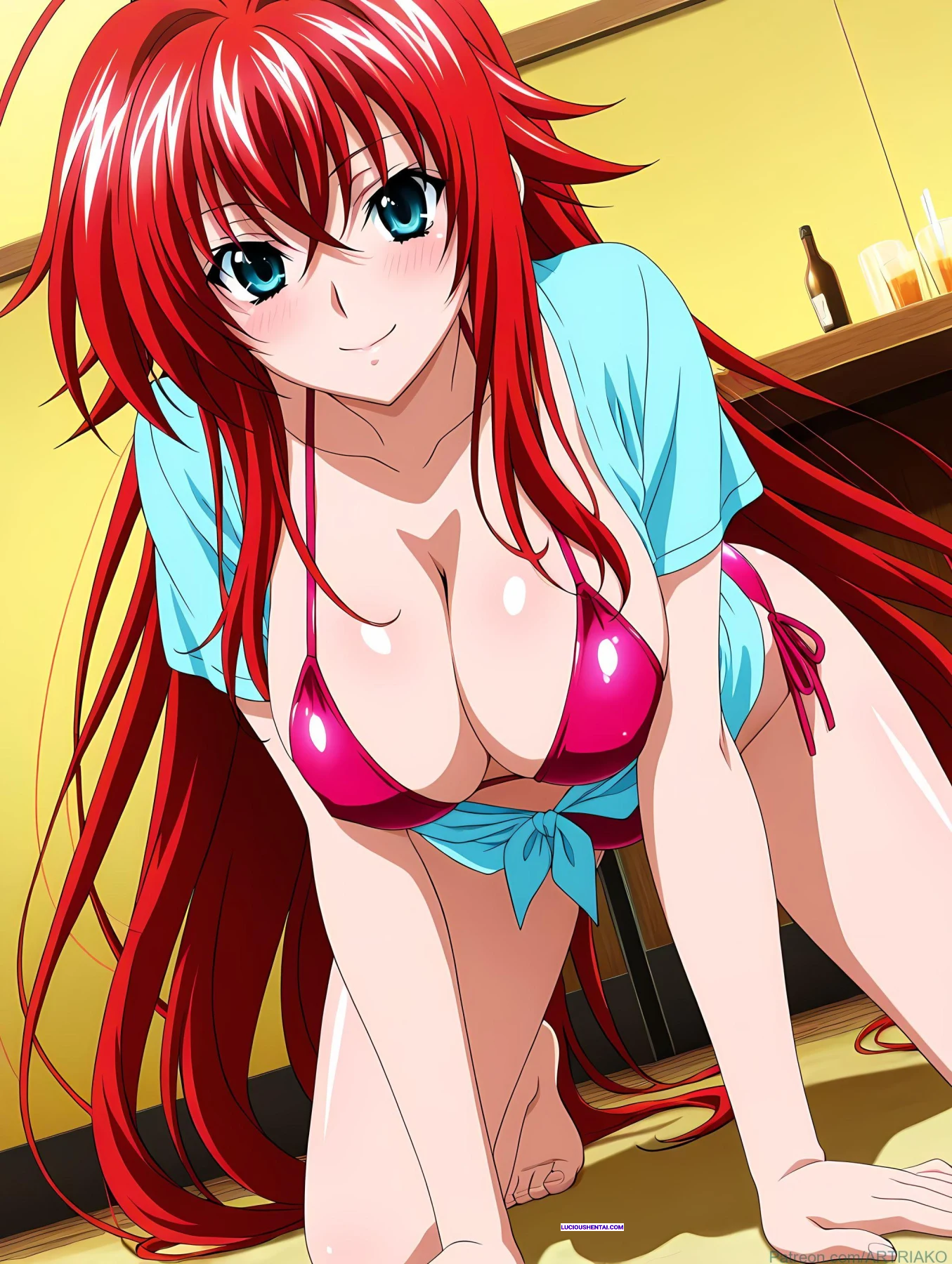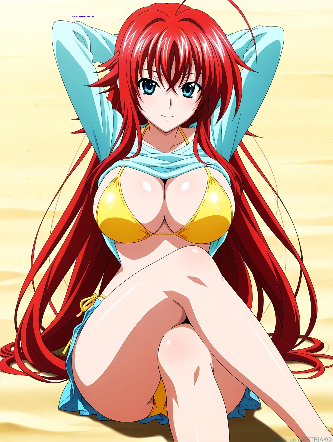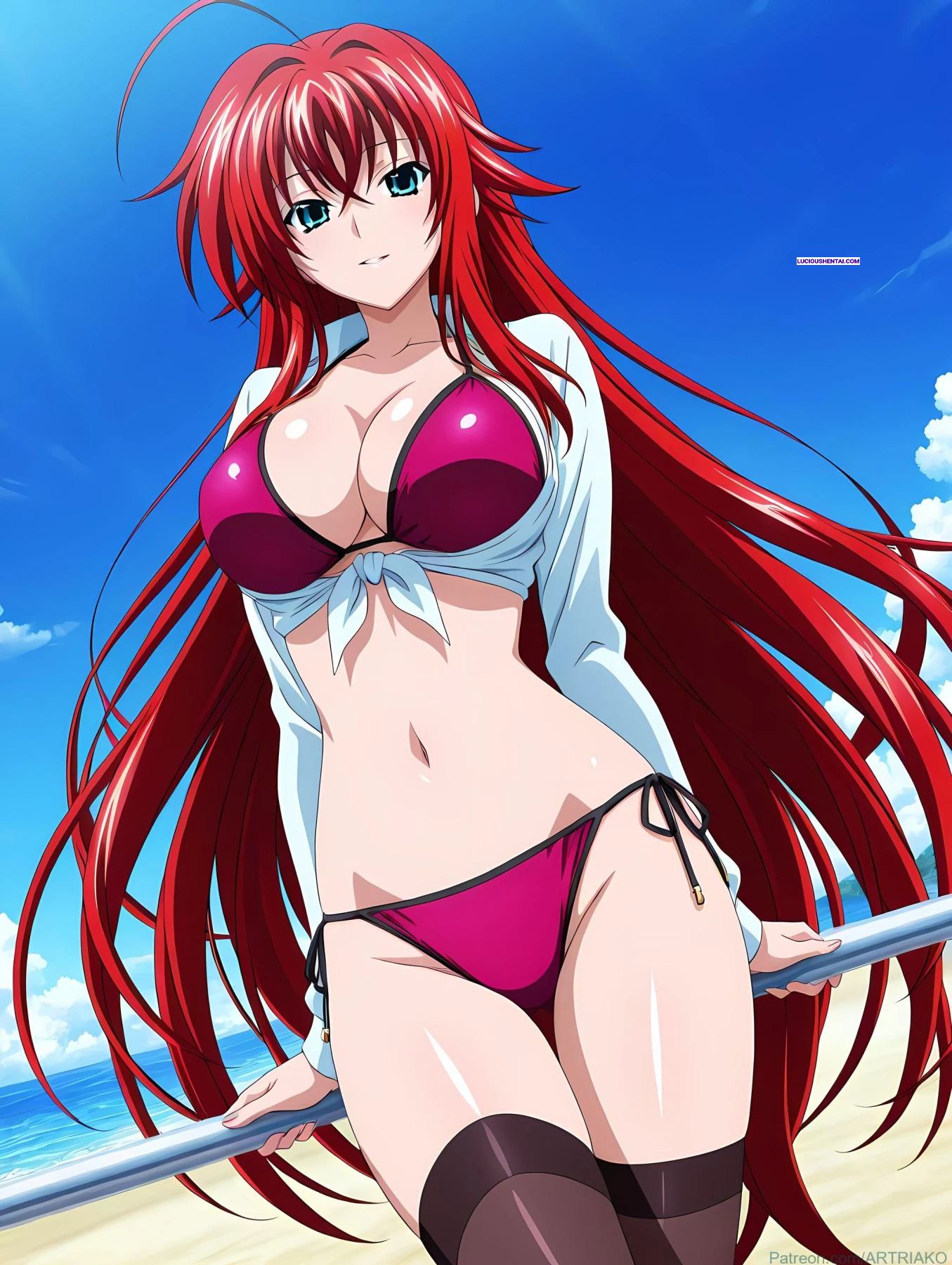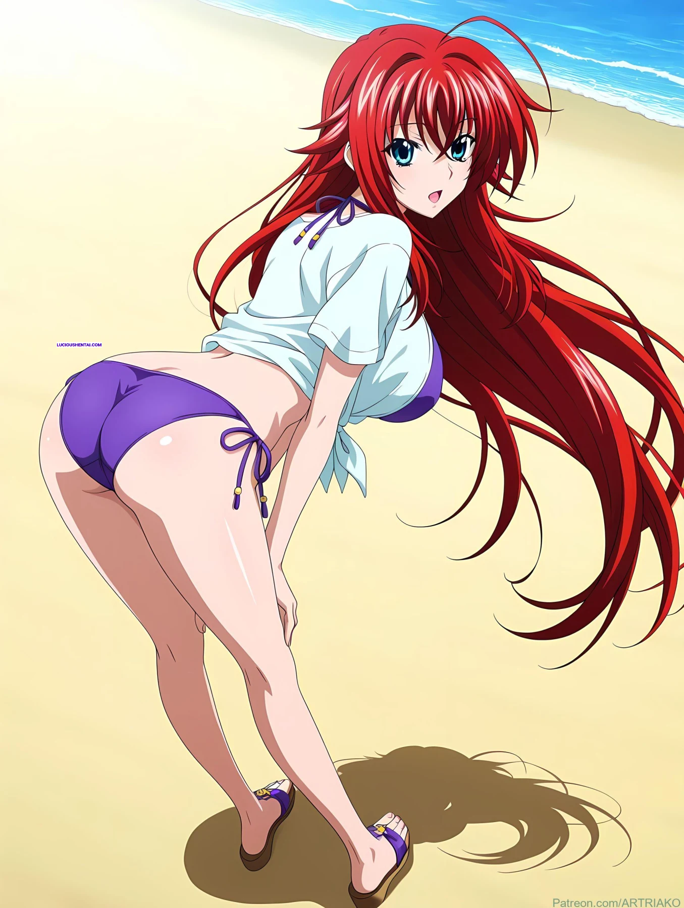 In the demonic halls of Kuoh Academy, fiery-haired Rias Gremory surrenders to raw passion during a forbidden encounter. As her peerage watches in awe, the crimson princess is ravished relentlessly, her voluptuous body quivering under intense thrusts, blending supernatural power with unbridled ecstasy in this steamy High School DxD tribute by artriako.