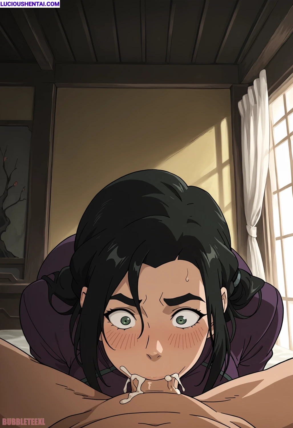 In the shadowed halls of the Earth Kingdom, Kuvira unleashes her unyielding dominance in a forbidden liaison with a captured rebel. Stripping away her iron armor, she rides him with feral intensity, her lithe body glistening in sweat as earth-shaking climaxes shatter the silence of Zaofu in this scorching Legend of Korra fantasy.